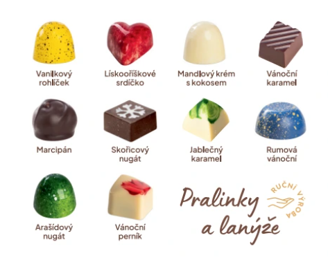 1x Vánoční krabička s pralinkami a lanýži (10ks)